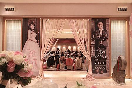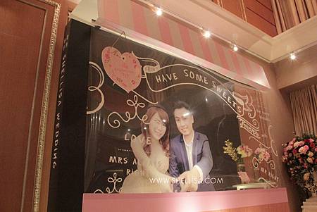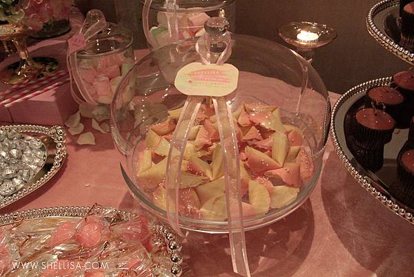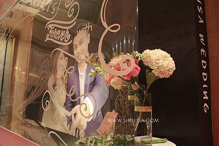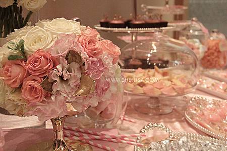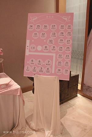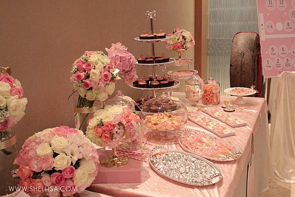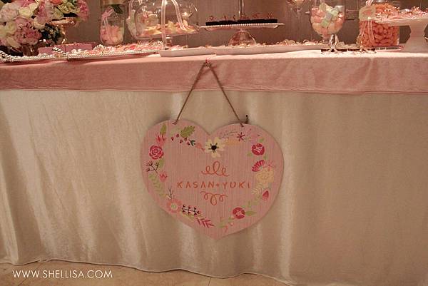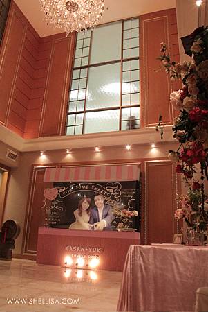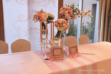 主要配色是粉色與白色,搭配會場的裝潢,配一點點的金色。