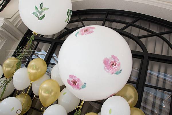 氣球也是同系列手繪設計,營造戶外婚禮氣氛。
