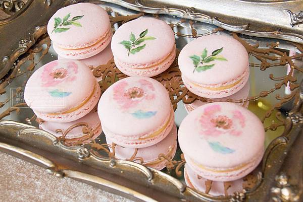 特製的水彩花手繪馬卡龍,搭配草莓檸檬口味的餡料,精緻又好吃